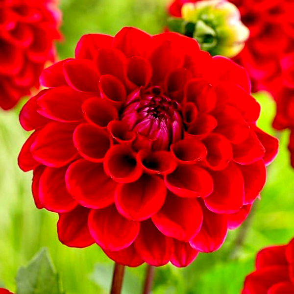 Dahlias grow from underground tubers and typically reach heights of 1-6 feet, depending on the variety. They bloom from midsummer until the first frost, making them valuable for extended garden color. The plants prefer full sun and well-drained, fertile soil. In colder climates, the tubers must be lifted and stored indoors during winter. Dahlias are excellent for cut flowers and are popular in both cottage gardens and formal landscapes. There are over 40 species and thousands of cultivars, making them one of the most diverse flowering plants available to gardeners.