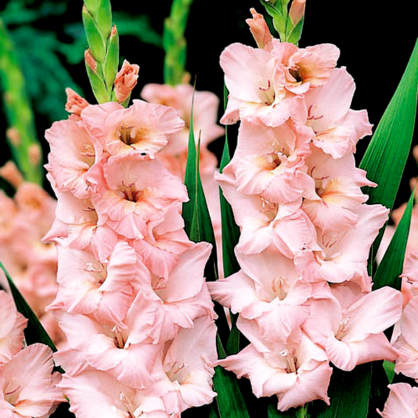 Native primarily to South Africa, with some species from the Mediterranean region, gladioli have become popular garden plants worldwide. They bloom in summer and are prized as cut flowers due to their impressive height and long-lasting blooms. The plants prefer full sun and well-drained soil, and in colder climates, the corms must be lifted and stored indoors during winter. Gladioli are excellent for creating dramatic vertical elements in flower gardens and are commonly grown in rows for cutting. There are over 260 species and countless cultivars, ranging from miniature varieties to giant exhibition types.