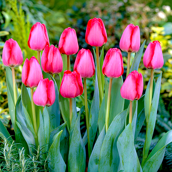 Tulips are iconic spring-blooming bulbs renowned for their elegant cup-shaped flowers and wide array of colors and forms. These bulbs produce single stems with distinctive flowers that can be found in virtually every color except true blue, including solid hues, bi-colors, and striking patterns with stripes, flames, or picotee edges.