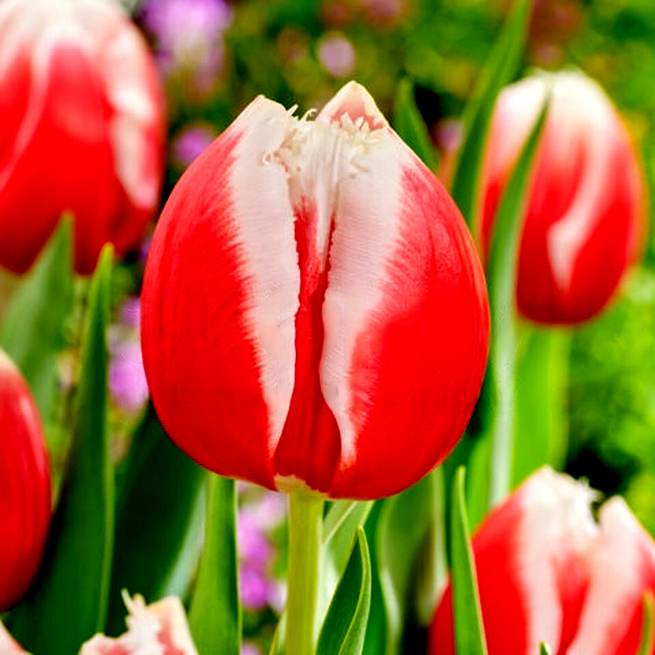 Tulips are iconic spring-blooming bulbs renowned for their elegant cup-shaped flowers and wide array of colors and forms. These bulbs produce single stems with distinctive flowers that can be found in virtually every color except true blue, including solid hues, bi-colors, and striking patterns with stripes, flames, or picotee edges.