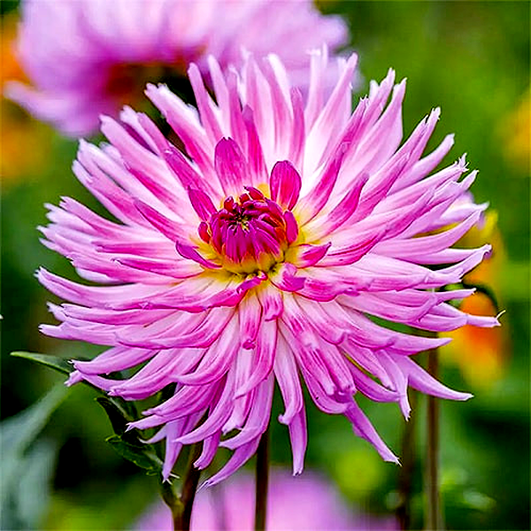 Dahlia is a genus of bushy, tuberous perennial plants native to Mexico and Central America. These popular garden flowers are prized for their spectacular blooms, which come in an extraordinary range of colors, sizes, and forms. Dahlia flowers can be as small as a coin or as large as dinner plates, with some varieties reaching over 12 inches across.