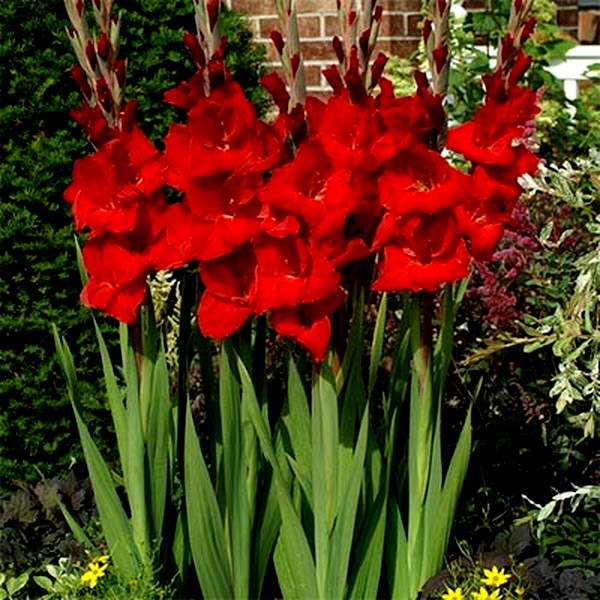 Native primarily to South Africa, with some species from the Mediterranean region, gladioli have become popular garden plants worldwide. They bloom in summer and are prized as cut flowers due to their impressive height and long-lasting blooms. The plants prefer full sun and well-drained soil, and in colder climates, the corms must be lifted and stored indoors during winter. Gladioli are excellent for creating dramatic vertical elements in flower gardens and are commonly grown in rows for cutting. There are over 260 species and countless cultivars, ranging from miniature varieties to giant exhibition types.