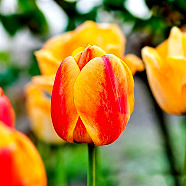 Tulips are iconic spring-blooming bulbs renowned for their elegant cup-shaped flowers and wide array of colors and forms. These bulbs produce single stems with distinctive flowers that can be found in virtually every color except true blue, including solid hues, bi-colors, and striking patterns with stripes, flames, or picotee edges.