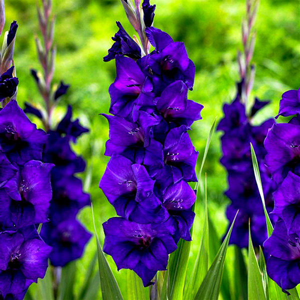 Gladiolus is a genus of perennial flowering plants that grow from corms (bulb-like underground storage organs) and are beloved for their tall, dramatic flower spikes. These striking plants produce sword-shaped leaves and towering stems that can reach 2-5 feet in height, topped with multiple funnel-shaped flowers arranged in dense, vertical clusters called racemes.