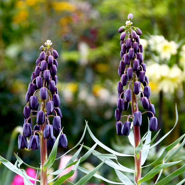 The flowers typically nod downward, hanging like lanterns from sturdy stems, and many species emit a subtle, sometimes musky fragrance. In gardens, fritillarias are prized for their unusual beauty and architectural form, though they can be challenging to grow as they often require specific soil conditions and may take several years to establish.