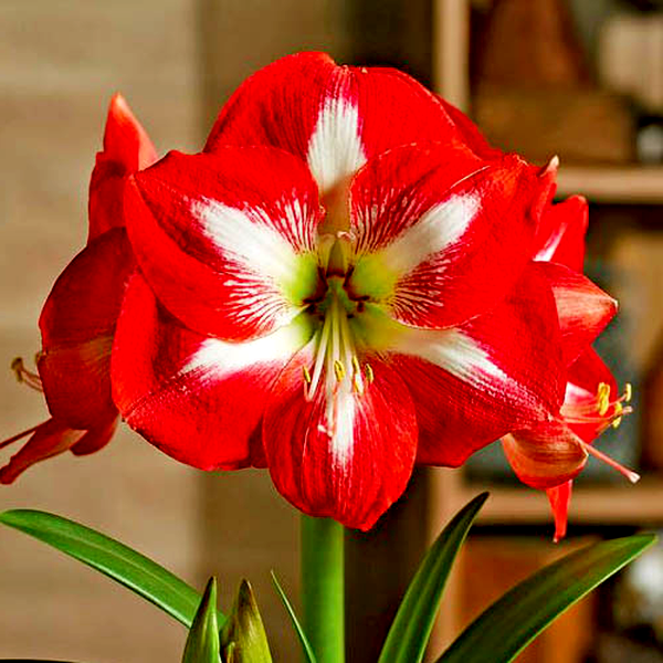 Amaryllis is a striking bulbous flowering plant best known for its large, trumpet-shaped blooms that make it a popular choice for indoor flowering during winter months. The most commonly cultivated species, Hippeastrum (often called amaryllis in horticulture), produces dramatic flowers that can reach 6-8 inches across, typically in shades of red, pink, white, orange, or striped combinations.