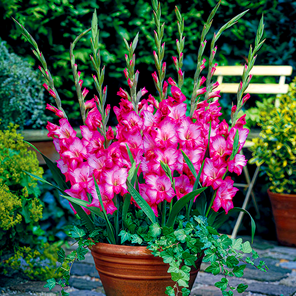 Native primarily to South Africa, with some species from the Mediterranean region, gladioli have become popular garden plants worldwide. They bloom in summer and are prized as cut flowers due to their impressive height and long-lasting blooms. The plants prefer full sun and well-drained soil, and in colder climates, the corms must be lifted and stored indoors during winter. Gladioli are excellent for creating dramatic vertical elements in flower gardens and are commonly grown in rows for cutting. There are over 260 species and countless cultivars, ranging from miniature varieties to giant exhibition types.