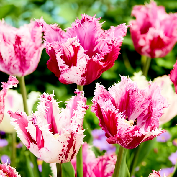 Tulips are iconic spring-blooming bulbs renowned for their elegant cup-shaped flowers and wide array of colors and forms. These bulbs produce single stems with distinctive flowers that can be found in virtually every color except true blue, including solid hues, bi-colors, and striking patterns with stripes, flames, or picotee edges.