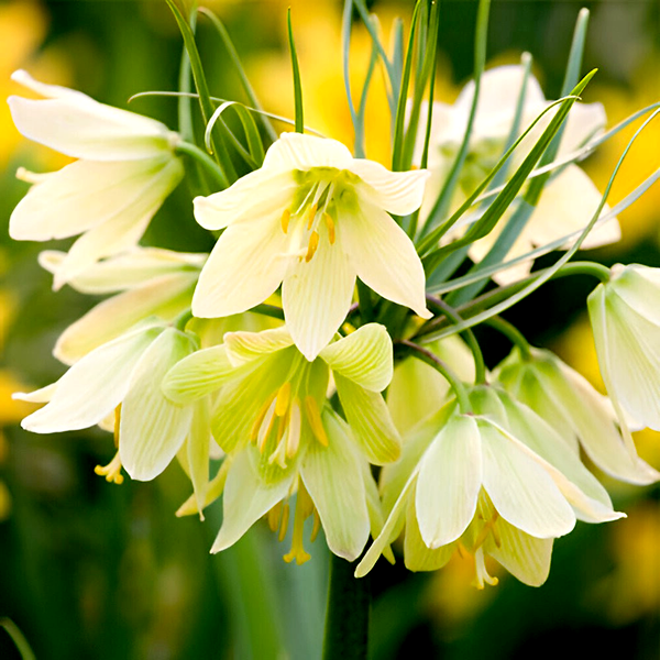 The flowers typically nod downward, hanging like lanterns from sturdy stems, and many species emit a subtle, sometimes musky fragrance. In gardens, fritillarias are prized for their unusual beauty and architectural form, though they can be challenging to grow as they often require specific soil conditions and may take several years to establish.