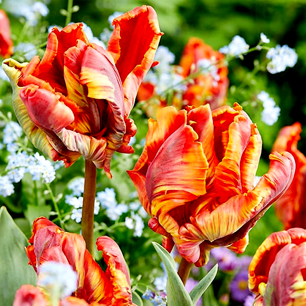 Tulips are iconic spring-blooming bulbs renowned for their elegant cup-shaped flowers and wide array of colors and forms. These bulbs produce single stems with distinctive flowers that can be found in virtually every color except true blue, including solid hues, bi-colors, and striking patterns with stripes, flames, or picotee edges.
