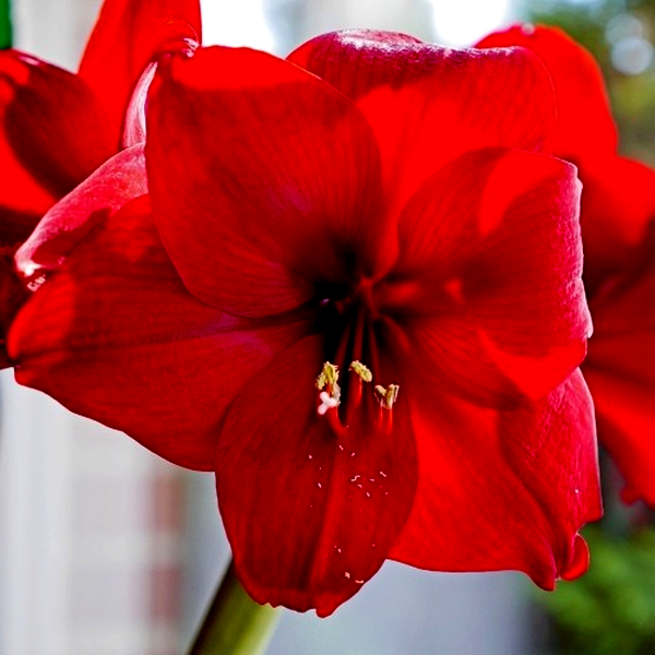 Amaryllis is a striking bulbous flowering plant best known for its large, trumpet-shaped blooms that make it a popular choice for indoor flowering during winter months. The most commonly cultivated species, Hippeastrum (often called amaryllis in horticulture), produces dramatic flowers that can reach 6-8 inches across, typically in shades of red, pink, white, orange, or striped combinations.