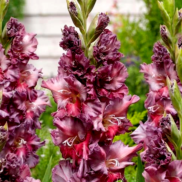 Native primarily to South Africa, with some species from the Mediterranean region, gladioli have become popular garden plants worldwide. They bloom in summer and are prized as cut flowers due to their impressive height and long-lasting blooms. The plants prefer full sun and well-drained soil, and in colder climates, the corms must be lifted and stored indoors during winter. Gladioli are excellent for creating dramatic vertical elements in flower gardens and are commonly grown in rows for cutting. There are over 260 species and countless cultivars, ranging from miniature varieties to giant exhibition types.