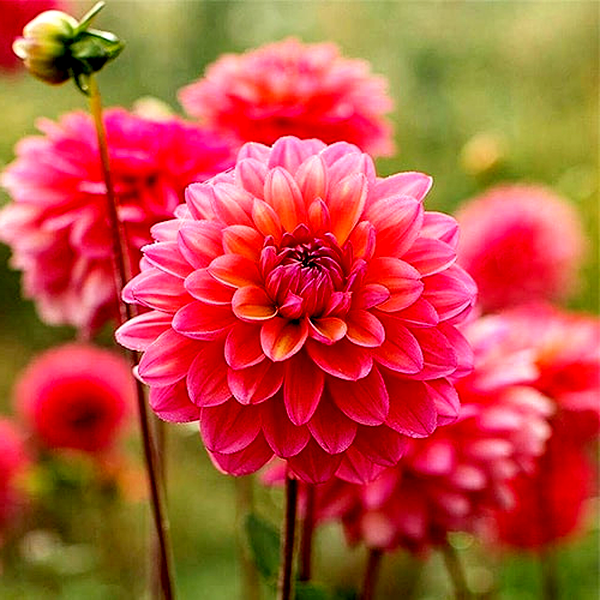 Dahlia is a genus of bushy, tuberous perennial plants native to Mexico and Central America. These popular garden flowers are prized for their spectacular blooms, which come in an extraordinary range of colors, sizes, and forms. Dahlia flowers can be as small as a coin or as large as dinner plates, with some varieties reaching over 12 inches across.