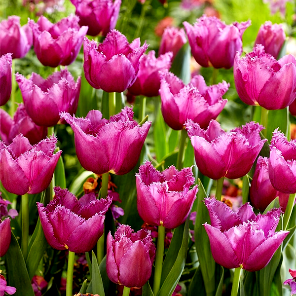 Tulips are iconic spring-blooming bulbs renowned for their elegant cup-shaped flowers and wide array of colors and forms. These bulbs produce single stems with distinctive flowers that can be found in virtually every color except true blue, including solid hues, bi-colors, and striking patterns with stripes, flames, or picotee edges.