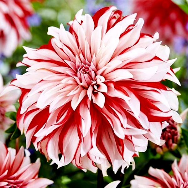 Dahlia is a genus of bushy, tuberous perennial plants native to Mexico and Central America. These popular garden flowers are prized for their spectacular blooms, which come in an extraordinary range of colors, sizes, and forms. Dahlia flowers can be as small as a coin or as large as dinner plates, with some varieties reaching over 12 inches across.