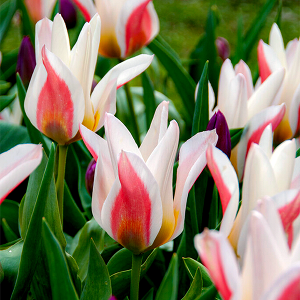 Tulips are iconic spring-blooming bulbs renowned for their elegant cup-shaped flowers and wide array of colors and forms. These bulbs produce single stems with distinctive flowers that can be found in virtually every color except true blue, including solid hues, bi-colors, and striking patterns with stripes, flames, or picotee edges.
