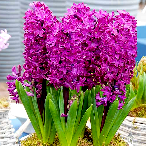 The bulbs are typically planted in fall, about 4-6 inches deep and 4-6 inches apart, in well-draining soil with full to partial sun exposure. Hyacinths are quite cold-hardy and require a period of winter chilling to bloom properly, making them ideal for temperate climates.