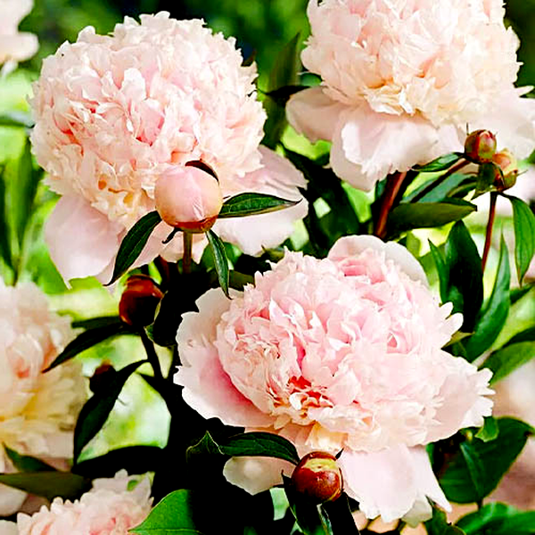 The flowers are the peony's crowning glory - large, full, and opulent with layers of silky petals that can span up to 8 inches across. They bloom in late spring to early summer in shades of pink, red, white, yellow, and coral, often with a rich, sweet fragrance. The buds are particularly charming, resembling tight, rounded marbles before unfurling into their full splendor.