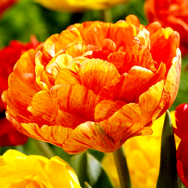 Tulips are iconic spring-blooming bulbs renowned for their elegant cup-shaped flowers and wide array of colors and forms. These bulbs produce single stems with distinctive flowers that can be found in virtually every color except true blue, including solid hues, bi-colors, and striking patterns with stripes, flames, or picotee edges.