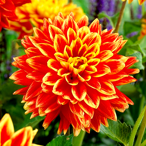 Dahlias grow from underground tubers and typically reach heights of 1-6 feet, depending on the variety. They bloom from midsummer until the first frost, making them valuable for extended garden color. The plants prefer full sun and well-drained, fertile soil. In colder climates, the tubers must be lifted and stored indoors during winter. Dahlias are excellent for cut flowers and are popular in both cottage gardens and formal landscapes. There are over 40 species and thousands of cultivars, making them one of the most diverse flowering plants available to gardeners.