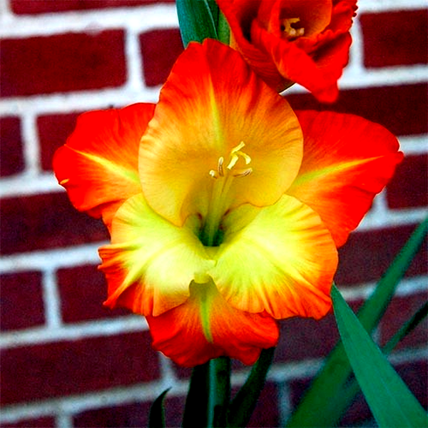 Gladiolus is a genus of perennial flowering plants that grow from corms (bulb-like underground storage organs) and are beloved for their tall, dramatic flower spikes. These striking plants produce sword-shaped leaves and towering stems that can reach 2-5 feet in height, topped with multiple funnel-shaped flowers arranged in dense, vertical clusters called racemes.