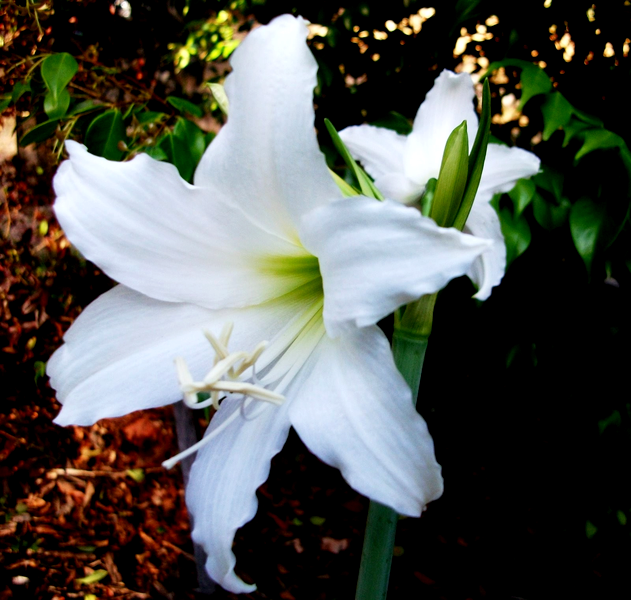 The plant grows from a large, rounded bulb that sends up a thick, hollow flower stalk called a scape, which can reach 12-24 inches tall. Each stalk typically bears 2-6 large, lily-like flowers that bloom in succession. The strap-shaped leaves are glossy green and usually emerge after or alongside the flowers, growing up to 18 inches long.