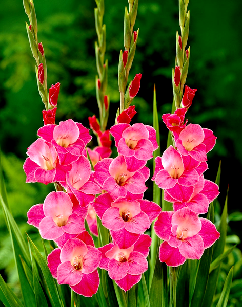 Native primarily to South Africa, with some species from the Mediterranean region, gladioli have become popular garden plants worldwide. They bloom in summer and are prized as cut flowers due to their impressive height and long-lasting blooms. The plants prefer full sun and well-drained soil, and in colder climates, the corms must be lifted and stored indoors during winter. Gladioli are excellent for creating dramatic vertical elements in flower gardens and are commonly grown in rows for cutting. There are over 260 species and countless cultivars, ranging from miniature varieties to giant exhibition types.