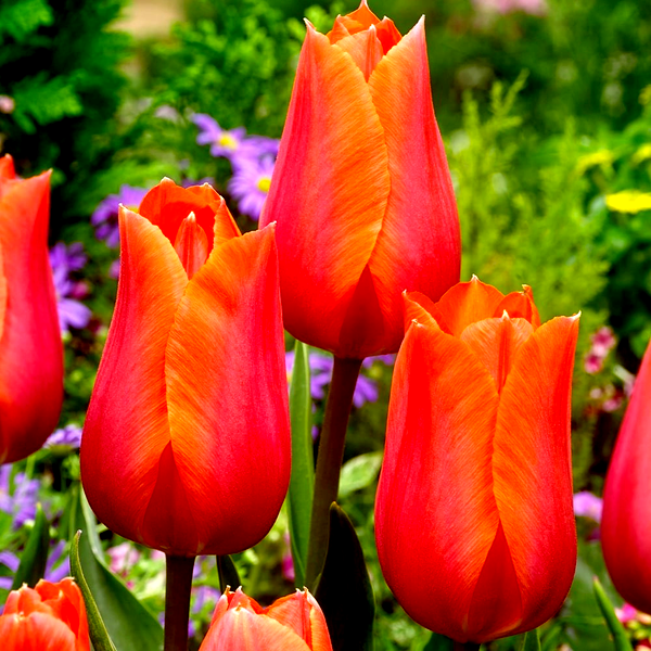 Tulips are iconic spring-blooming bulbs renowned for their elegant cup-shaped flowers and wide array of colors and forms. These bulbs produce single stems with distinctive flowers that can be found in virtually every color except true blue, including solid hues, bi-colors, and striking patterns with stripes, flames, or picotee edges.