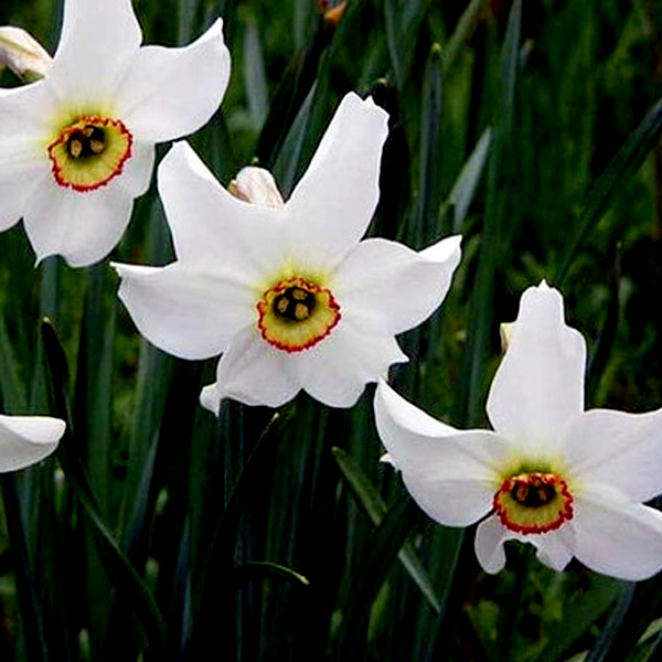 Narcissus flowers typically bloom in early to mid-spring, often pushing through the last snow to create drifts of color in gardens, meadows, and woodlands. They're remarkably hardy and low-maintenance, multiplying naturally over time to form large colonies. Most varieties are also deer and rodent resistant due to toxic alkaloids in all parts of the plant.
