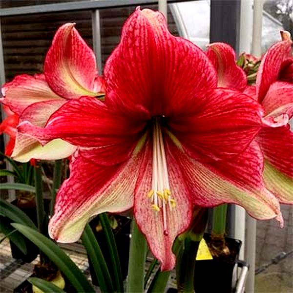 Amaryllis is a striking bulbous flowering plant best known for its large, trumpet-shaped blooms that make it a popular choice for indoor flowering during winter months. The most commonly cultivated species, Hippeastrum (often called amaryllis in horticulture), produces dramatic flowers that can reach 6-8 inches across, typically in shades of red, pink, white, orange, or striped combinations.