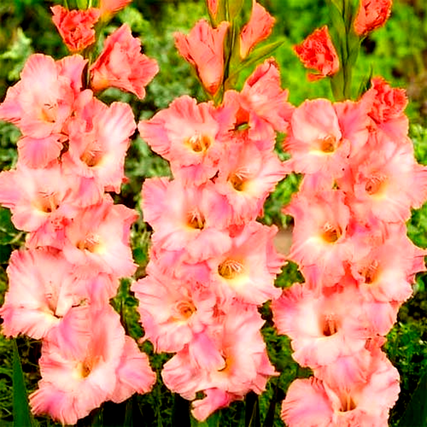 Native primarily to South Africa, with some species from the Mediterranean region, gladioli have become popular garden plants worldwide. They bloom in summer and are prized as cut flowers due to their impressive height and long-lasting blooms. The plants prefer full sun and well-drained soil, and in colder climates, the corms must be lifted and stored indoors during winter. Gladioli are excellent for creating dramatic vertical elements in flower gardens and are commonly grown in rows for cutting. There are over 260 species and countless cultivars, ranging from miniature varieties to giant exhibition types.
