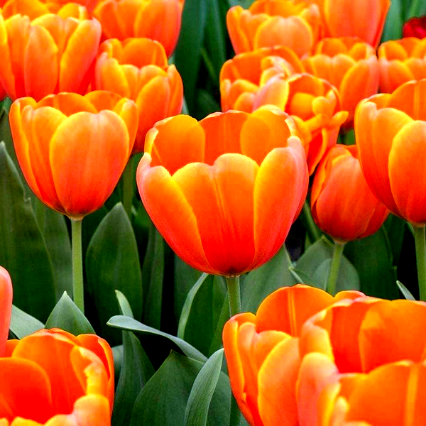 Tulips are iconic spring-blooming bulbs renowned for their elegant cup-shaped flowers and wide array of colors and forms. These bulbs produce single stems with distinctive flowers that can be found in virtually every color except true blue, including solid hues, bi-colors, and striking patterns with stripes, flames, or picotee edges.