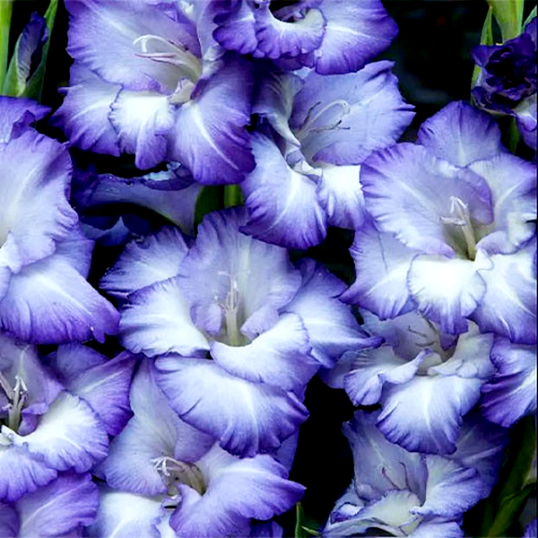 Gladiolus is a genus of perennial flowering plants that grow from corms (bulb-like underground storage organs) and are beloved for their tall, dramatic flower spikes. These striking plants produce sword-shaped leaves and towering stems that can reach 2-5 feet in height, topped with multiple funnel-shaped flowers arranged in dense, vertical clusters called racemes.