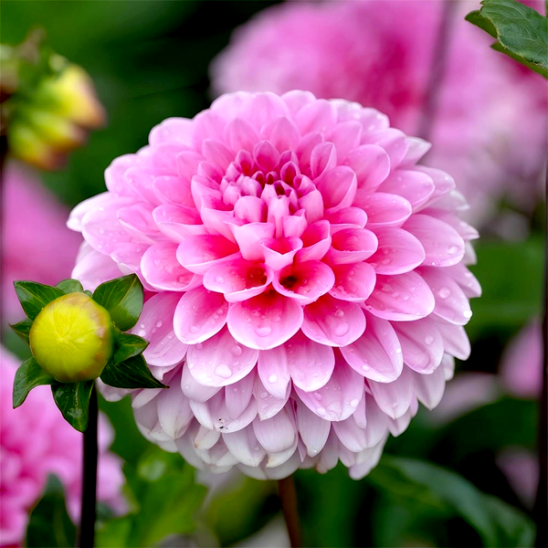 Dahlia is a genus of bushy, tuberous perennial plants native to Mexico and Central America. These popular garden flowers are prized for their spectacular blooms, which come in an extraordinary range of colors, sizes, and forms. Dahlia flowers can be as small as a coin or as large as dinner plates, with some varieties reaching over 12 inches across.