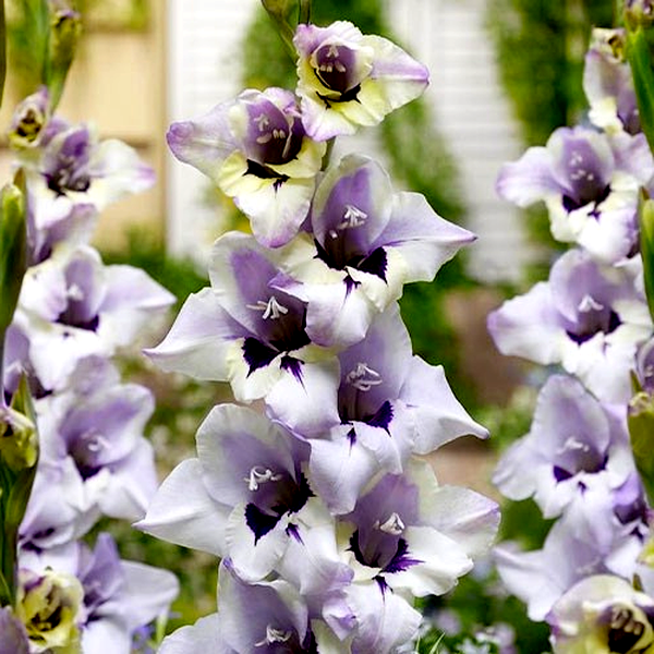 Native primarily to South Africa, with some species from the Mediterranean region, gladioli have become popular garden plants worldwide. They bloom in summer and are prized as cut flowers due to their impressive height and long-lasting blooms. The plants prefer full sun and well-drained soil, and in colder climates, the corms must be lifted and stored indoors during winter. Gladioli are excellent for creating dramatic vertical elements in flower gardens and are commonly grown in rows for cutting. There are over 260 species and countless cultivars, ranging from miniature varieties to giant exhibition types.