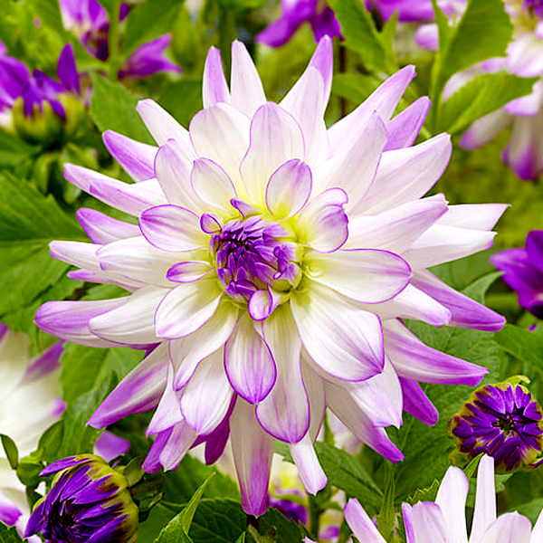 Dahlia is a genus of bushy, tuberous perennial plants native to Mexico and Central America. These popular garden flowers are prized for their spectacular blooms, which come in an extraordinary range of colors, sizes, and forms. Dahlia flowers can be as small as a coin or as large as dinner plates, with some varieties reaching over 12 inches across.
