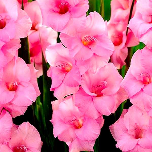 Gladiolus is a genus of perennial flowering plants that grow from corms (bulb-like underground storage organs) and are beloved for their tall, dramatic flower spikes. These striking plants produce sword-shaped leaves and towering stems that can reach 2-5 feet in height, topped with multiple funnel-shaped flowers arranged in dense, vertical clusters called racemes.