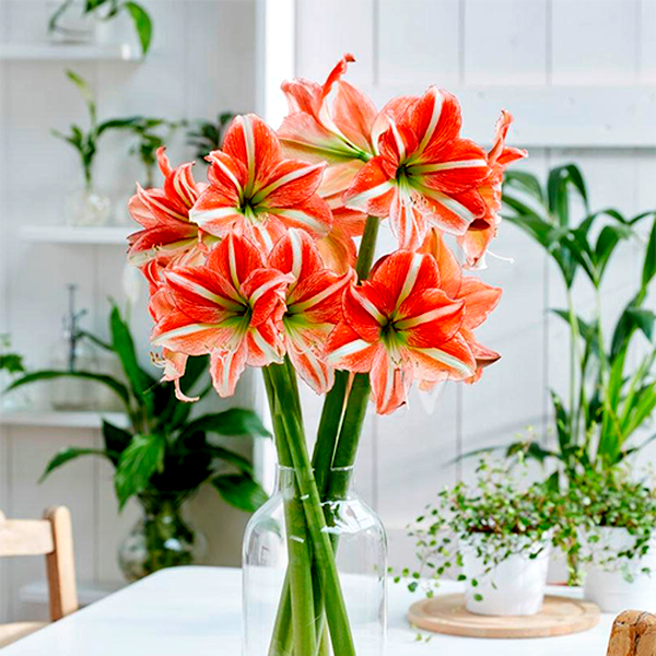 Amaryllis is a striking bulbous flowering plant best known for its large, trumpet-shaped blooms that make it a popular choice for indoor flowering during winter months. The most commonly cultivated species, Hippeastrum (often called amaryllis in horticulture), produces dramatic flowers that can reach 6-8 inches across, typically in shades of red, pink, white, orange, or striped combinations.