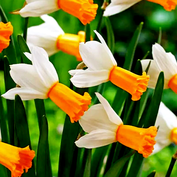 Narcissus flowers typically bloom in early to mid-spring, often pushing through the last snow to create drifts of color in gardens, meadows, and woodlands. They're remarkably hardy and low-maintenance, multiplying naturally over time to form large colonies. Most varieties are also deer and rodent resistant due to toxic alkaloids in all parts of the plant.
